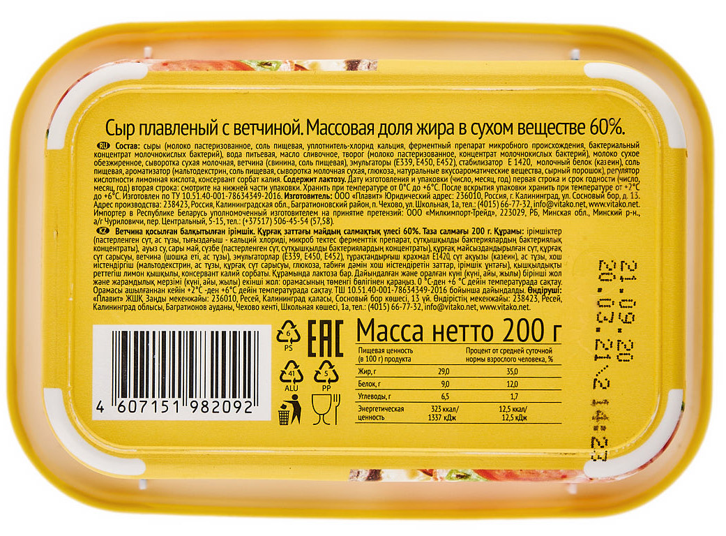 Плавленый сыр с ветчиной это нежная текстура сыра с добавлением кусочков натуральной высококачественной ветчины. Порадуйте себя ярким насыщенным вкусом любимого плавленого сыра.